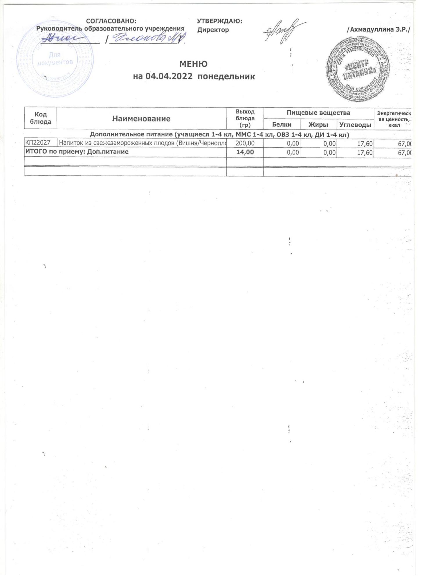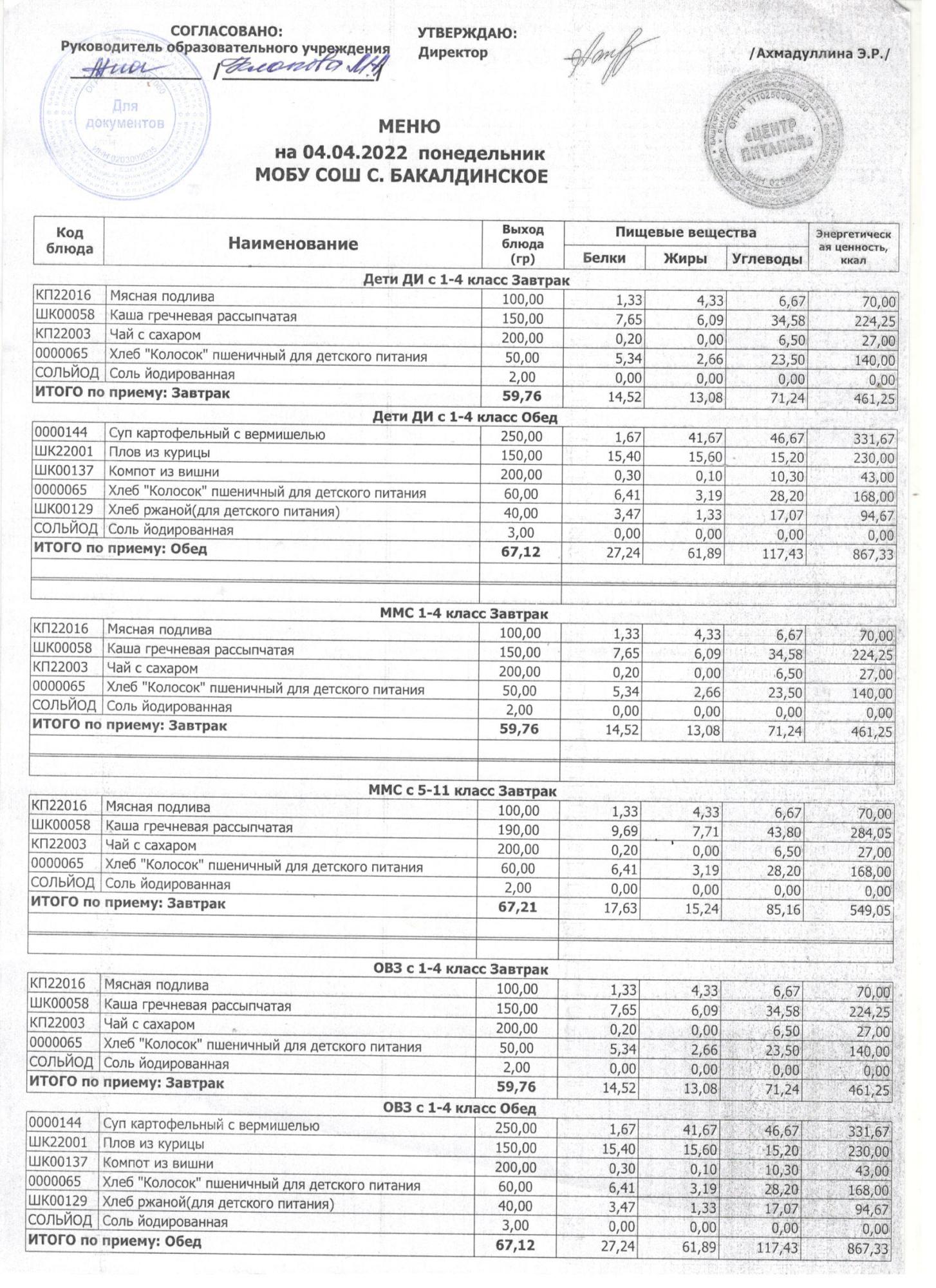 (ежедневное меню 04.04.2022)