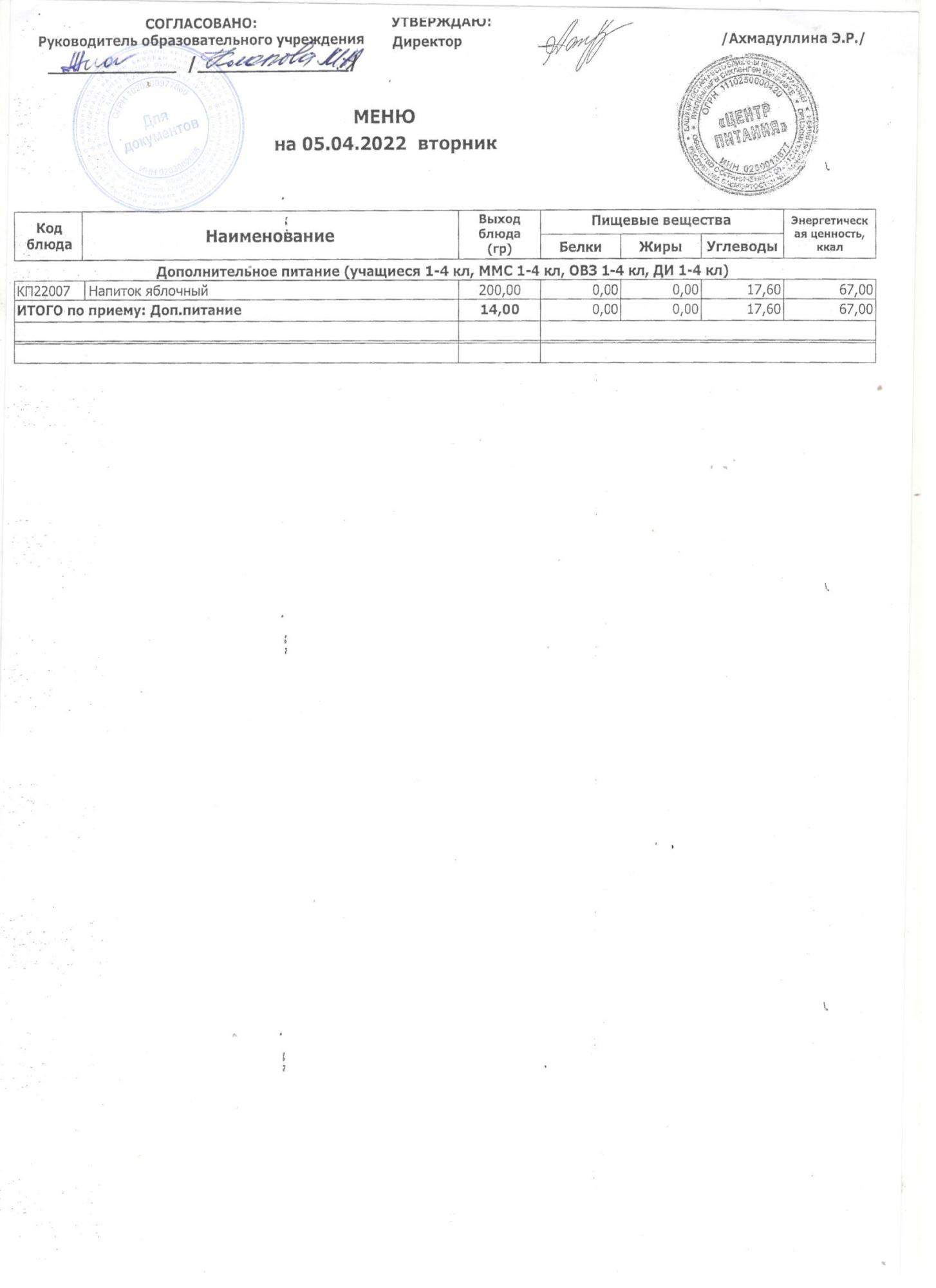 (ежедневное меню 05.04.2022)